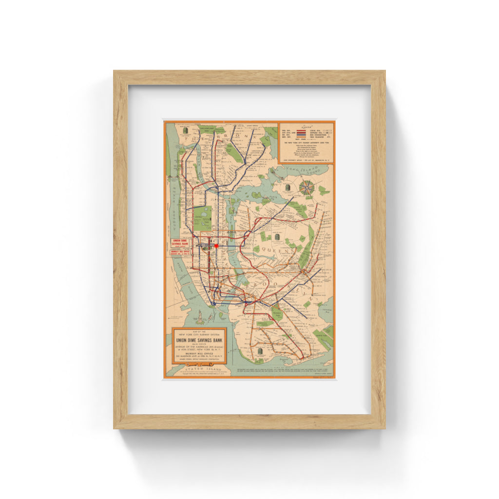This captivating vintage subway map comes to life with a glowing highlight on Grand Central Station, the beating heart of New York City's underground system. The LED light pinpoints the iconic station, symbolizing the endless connections and journeys that converge at this landmark. An intricate homage to the city’s past, this artwork evokes the history of the subway lines that have guided millions through the streets of New York. Perfect for urban explorers and history enthusiasts, this piece will add a warm, nostalgic glow to any space, illuminating not just a map, but a story of constant movement and connection in the city that never sleeps.